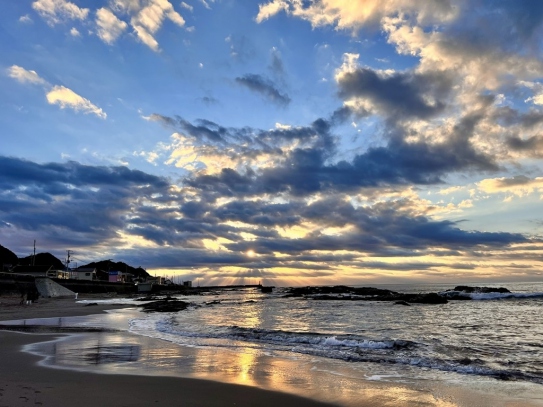 元旦2026年の朝は、太陽を包み込む雲の間から日の光が差し込む、幻想的な景色でのスタートとなりました。